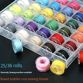 Set di bobine da 25/36 pezzi con filo per cucire, bobine colorate in scatola da 25/36 griglie, pratica sostituzione semplice installazione domestica per macchina da cucire