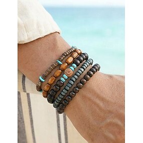 Set di bracciali da uomo in stile bohémien, 6 pezzi, lunghezza regolabile, in lega, guscio di cocco &Materiali misti legno, perfetti per le vacanze al mare e per l'uso quotidiano informale.