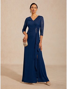 Per donna Abito maxi Abito a trapezio Elegante Festa serale Arricciato Allacciato Volant Tinta unica Manica 3/4 Scollo a V Blu marino