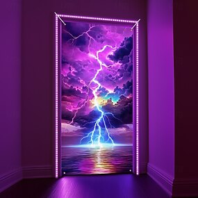 Decorazioni per Porte Blacklight Coperture per Porte Glow in the Dark Paesaggio Fulmini Arazzo per Porta Tenda Decorazione Backdrop Banner per Porta Principale Casa di Campagna