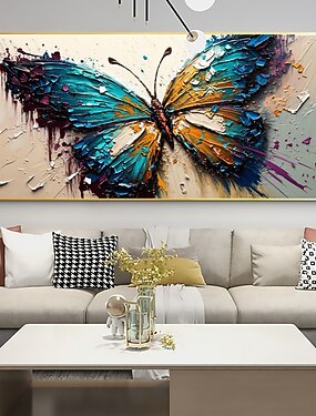 dipinto a olio originale fatto a mano con farfalla su tela, decorazione artistica da parete, dipinto astratto per la decorazione domestica con cornice allungata/senza cornice interna
