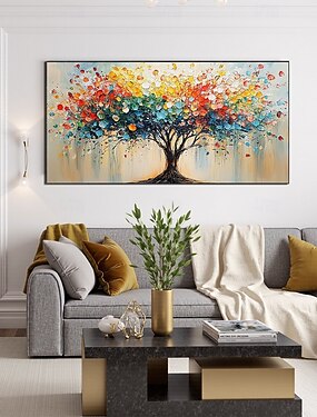 dipinto a olio originale fatto a mano con texture colorata su tela, albero astratto della vita, arte murale per l'arredamento della casa senza cornice interna (senza cornice)
