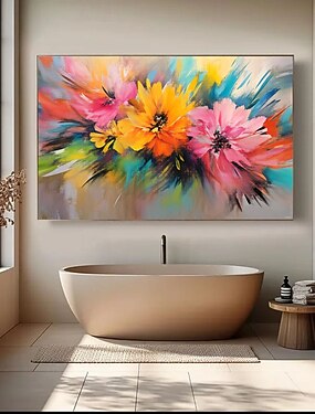 dipinto di fiori colorati fatto a mano, dipinto a olio astratto, stile arte murale, poster su tela, arredamento per la casa, cucina, ufficio, regali