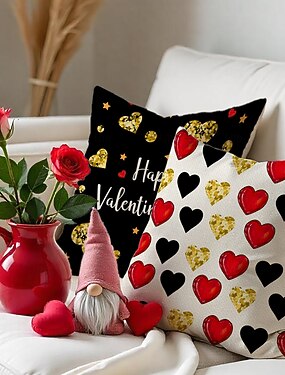 Set di cuscini per San Valentino in lino con stampa scozzese, motivo a cuore, cuscino decorativo per la vita, copridivano per soggiorno, arredamento per la casa, cuscino da comodino