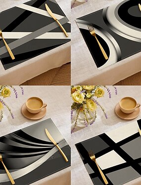 Runner da tavola geometrico retrò in bianco e nero, decorazione rettangolare in tessuto 100% poliestere, design minimalista con motivo astratto, lavabile in lavatrice, resistente al calore.