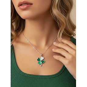 Collana da donna a forma di trifoglio per San Patrizio, ciondolo con ciondolo verde in lega resistente, vari stili tra cui trifoglio e ferro di cavallo, gioielli irlandesi festivi per sfilate, feste e abbigliamento per le feste.