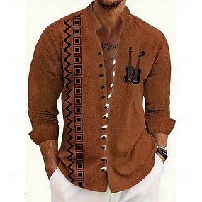 Per uomo Motivo Geometrico Chitarra Strumento musicale Camicia Camicia con colletto alla coreana Manica Lunga Vintage Retrò Casuale Vacanza Primavera Autunno Collo alla coreana Colletto alla coreana