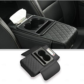 Scatola portaoggetti multifunzionale per bracciolo auto di lusso, scatola portafazzoletti con motivo a rombi, con portabicchieri e slot per telefono cellulare, scatola portaoggetti per auto integrata,