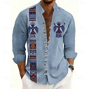 Per uomo Camicia Camicia di lino Camicia Estiva Abbigliamento da spiaggia Camicia con Bottoni Semplice Vacanza Casuale Blu Nero Bianco Rosa Manica Lunga Collo ripiegato Primavera & Estate