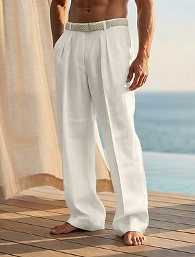 Per uomo Pantaloni di Lino Pantaloni Pantaloni Estivi Tasca Frontale Pieghe Gamba Dritta Semplice Comodità Traspirante Lunghezza intera Casuale Quotidiano Spiaggia Vacanza Moda Nero Bianco Inelastico