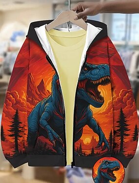 Ragazzi 3D Dinosauro Felpa con Cappuccio Cappotto Abbigliamento Esterno Manica Lunga Primavera Autunno Streetwear Canotta sportiva Bambini 4-12 Anni Con cerniera Streetwear Quotidiano Vestibilit