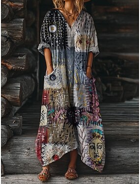 Abito Maxi da Donna Boho Abito da Spiaggia A Linea Vacanza Casual Compleanno Quotidiano Festa Vestibilità Larga Floreale Manica Lunga V Collo Giallo Rosso Blu Viola Primavera Autunno