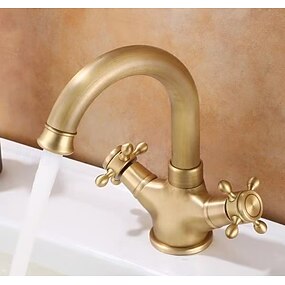 rubinetto del lavandino del bagno in rame antico, diffuso nero diffuso due rubinetti da bagno a tre fori con interruttore caldo e freddo