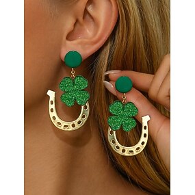 orecchini pendenti in acrilico a forma di trifoglio per il giorno di San Patrizio da donna, orecchini pendenti leggeri a forma di trifoglio glitterato, gioielli verdi irlandesi multi-stile per donna, perfetti per sfilate natalizie, feste e abbigliamento f