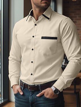 Per uomo Camicia Camicia elegante Camicia con Bottoni Blocco di colori Quotidiano Affari Blu chiaro Nero Bianco Kaki Manica Lunga Collo ripiegato Tutte le stagioni Abbigliamento Patchwork