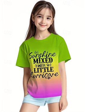 Ragazze 3D Grafico Lettera Maglietta Manica Corta Stampa 3D Estate Primavera Sport Moda Streetwear Bambini 4-12 Anni Girocollo Casuale Quotidiano All'aperto Vestibilità regolare