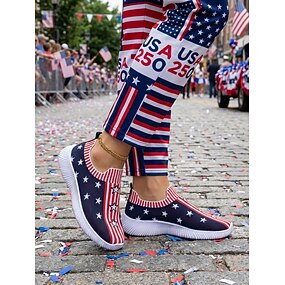 scarpe da ginnastica da donna in maglia con bandiera americana rossa e blu, scarpe da passeggio leggere e traspiranti slip-on per il 4 luglio, eventi patriottici, 250° anniversario degli Stati Uniti