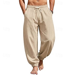 Per uomo Pantaloni di Lino Pantaloni Pantaloni Estivi Pantaloni Larghi Coulisse Elastico in vita Gamba Dritta Semplice Leggero Traspirante Lunghezza intera Casuale Quotidiano All'aperto Vacanza Moda