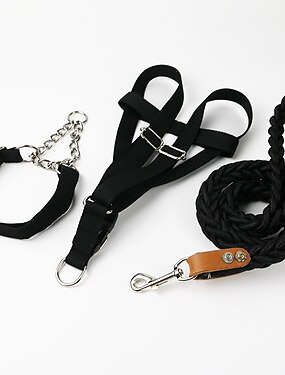 Corda da trazione per animali domestici, set da tre pezzi. Collare con fascia toracica per cani. Corda per cani. Collare per cani di taglia media e grande. Collare a catena