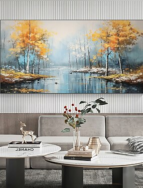 dipinto a olio originale della foresta fatto a mano su tela decorazione artistica da parete paesaggio lacustre astratto dipinto di paesaggio per la decorazione domestica con cornice allungata/senza