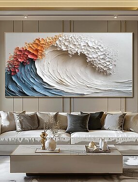 Dipinto a olio fatto a mano su tela, decorazione da parete, stile moderno, onde del mare, barriera corallina, paesaggio, per la decorazione della casa, dipinto arrotolato, senza cornice, non teso.