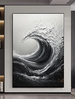 dipinto a olio dipinto a mano astratto strutturato onda del mare dipinto su tela fatto a mano dipinto onda dell'oceano bianco e nero opera d'arte minimalista nera dipinti per corridoio di casa moderna