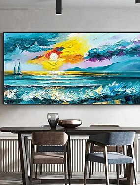 dipinto a olio fatto a mano su tela decorazione artistica da parete astratta alba sul mare bagliore mattutino paesaggio per la decorazione domestica pittura arrotolata senza cornice non stirata