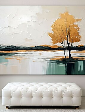 fatto a mano dipinto a mano arte da parete moderno astratto foglie d'oro paesaggio decorazione della casa arredamento tela arrotolata senza cornice non tesa