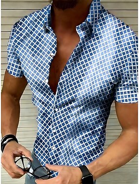 Per uomo Camicia Camicia Estiva Camicia casual Camicia da Spiaggia Camicia con Bottoni Nero Bianco Rosso Blu Verde Manica Corta Geometrico Rombi Bavero Vacanza Camicia hawaiana Bottoni Abbigliamento