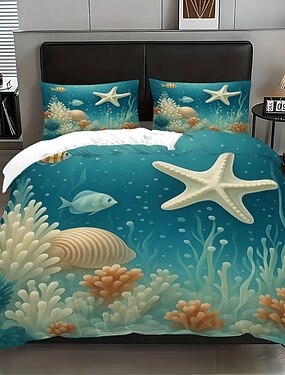 stella marina del mondo sottomarino &set copripiumino octopus 3 pezzi per letto matrimoniale, copripiumino morbido con 2 federe – hotel &biancheria da letto per gli ospiti, accogliente & comodo