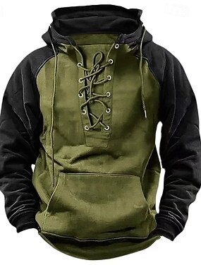 Per uomo Felpa con cappuccio Felpa con cappuccio a nido d'ape Maglione Nero Verde militare Blu marino Cachi Grigio chiaro Con Cappuccio Semplice Patchwork Blocco di colore Tasca a marsupio Casuale