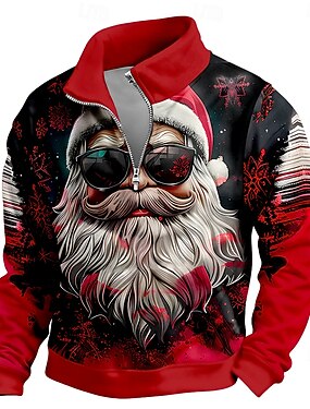 Natale Per uomo Babbo Natale Felpa Cool Quotidiano Elegante Manica Lunga Collo alla coreana All'aperto Casa Regalo Blu Rosso Viola Grigio Cerniera Autunno Inverno progettista S M L XL XXL XXXL