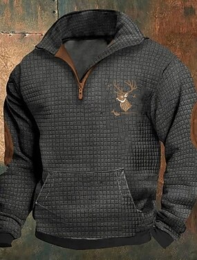 Per uomo Maglia Felpa a nido d'ape Felpa con zip corta Nero Grigio scuro Mezza zip Renna Patchwork Stampato Testurizzato Natale Quotidiano Ferie Streetwear Casual Autunno Primavera & Autunno