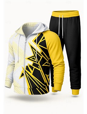 Per uomo Felpa con cappuccio Tuta da Ginnastica Tuta da 2 pezzi Coulisse Con zip Geometrico Completo Abbigliamento Autunno Inverno Giallo Rosso Lavoro All'aperto Viaggio Leggero Di tendenza Manica