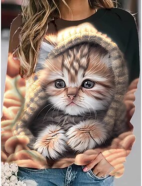 Per donna Felpa Pullover Felpe con cappuccio Stampato Animale Gatto Cane Moda Casual Manica Lunga Girocollo Top Regolari Casuale Streetwear Abbigliamento Quotidiano Rosa Marrone Grigio chiaro