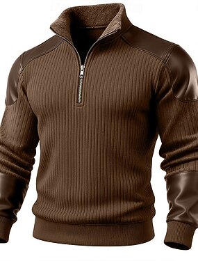 Per uomo Campeggio Nido d'ape Felpa Quotidiano Classico Casual Da caccia Collo alla coreana Zip a un quarto All'aperto Casa Ufficio Lavoro Nero Giallo Blu Marrone Grigio Con zip Autunno Inverno