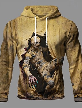 Halloween Per uomo Mostro Felpa con Cappuccio Moda Quotidiano Casual Manica Lunga Con Cappuccio Vacanza Feste Abbigliamento casual alla moda Festival Cachi Coulisse Tasca Stampa Autunno Inverno