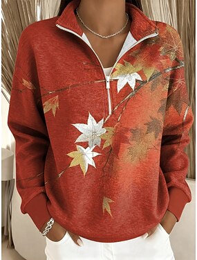 Per donna Felpa Pullover Floreale Grafico Casual Manica Lunga Mezza zip Top Regolari Casuale Abbigliamento Quotidiano Sportivo Blu Viola Arancione Verde Autunno Inverno