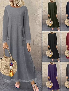Per donna Abito Midi Abito con Cappuccio Vestito Casual Moderno Vacanza Uscire Vestibilità regolare Semplice Manica Lunga Girocollo Nero Verde militare Rosso Viola Autunno Inverno