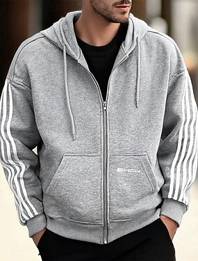 Per uomo Felpa con cappuccio Felpa con cappuccio a zip intera Grigio Con Cappuccio A righe Con zip Tasca Sport & Outdoor Quotidiano Ferie Poliestere Streetwear Essenziale Casual Primavera Autunno