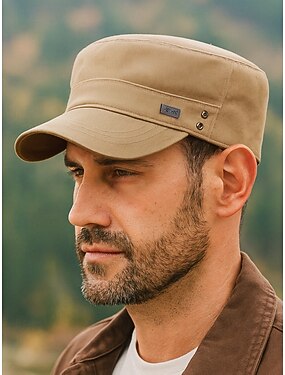 berretto militare da uomo in cotone con cinturino regolabile, cappello militare casual con parte superiore piatta per sport all'aria aperta, viaggi e uso quotidiano