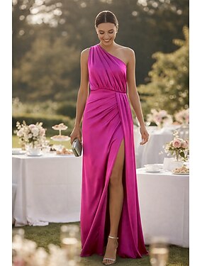 Tubino Colonna Lunghezza alla caviglia Abito da Ballo Abito da invitata a nozze Abito da sera Abiti da Ballo Elegante Senza Maniche Monospalla Balli di fine anno Formale Raso con Pieghe Arricciato