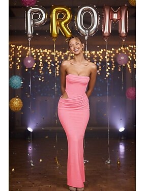 Tubino Colonna Lunghezza al pavimento Abito da invitata a nozze Abito Formale Abito da sera Abiti da Ballo Elegante Senza Maniche Senza Spalle Balli di fine anno Formale Tessuto Elasticizzato con