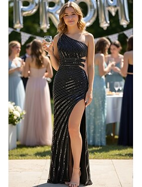 Tubino Colonna Strascico a Terra Asimmetrico Abito da Ballo Perline ricamate Vestito da Festa Abiti per invitati a matrimoni Festa Scintillante Senza Maniche Monospalla Balli di fine anno Matrimonio