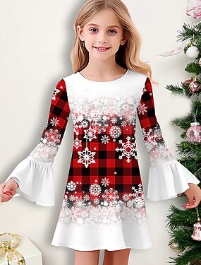 ragazze' 3D A quadri Fiocco di neve Abito fiocco di neve Abito con balze Manica lunga Stampa 3D Autunno Inverno Da mare Sportivo Giornaliero stile sveglio Informale Bellissimo Bambino 3-12 anni Abito