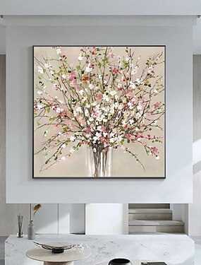 Pittura a olio di fiori astratti fatta a mano Pittura a olio di albero in fiore astratto Albero colorato in fiore su tela Pianta fatta a mano Opera d'arte floreale Pittura di paesaggio Decorazione da