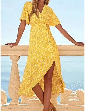 Per donna Abito lungo Abito lungo Abito linea A Abito boho Elegante Moda Informale Da mare Giornaliero Standard Floreale Manica corta A V Rosso Blu Viola Verde Estate Primavera