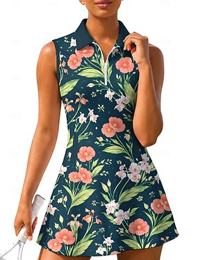 Per donna Floreale Motivo Floreale Abito da tennis Abito sportivo Senza Maniche Floreale Traspirante Tennis Golf Badminton Colletto Polo Collo con zip Vestito Verde e nero Blu marino Blu