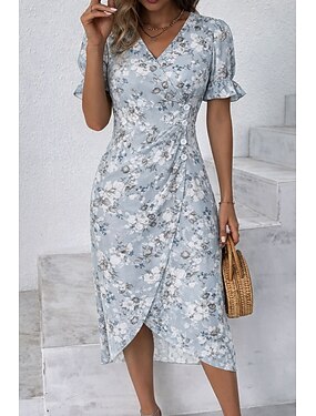 Per donna Abito Midi Abito Estivo Abito con balze Abito aderente Vacanza Festa Casual Vestibilità regolare Floreale Grafico Manica Corta Scollo a V Blu Giallo Rosa Estate Primavera