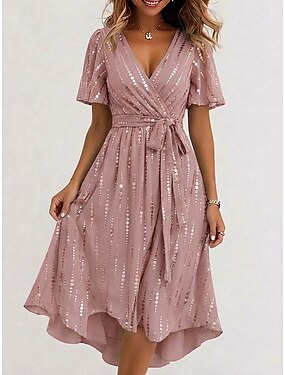 Per donna Abito Midi Vestito in Chiffon Abito Floreale Abito Estivo Elegante Moderno Vacanza Ferie Tè Vestibilità regolare Geometrico Manica Corta Scollo a V Rosa Verde Estate Primavera